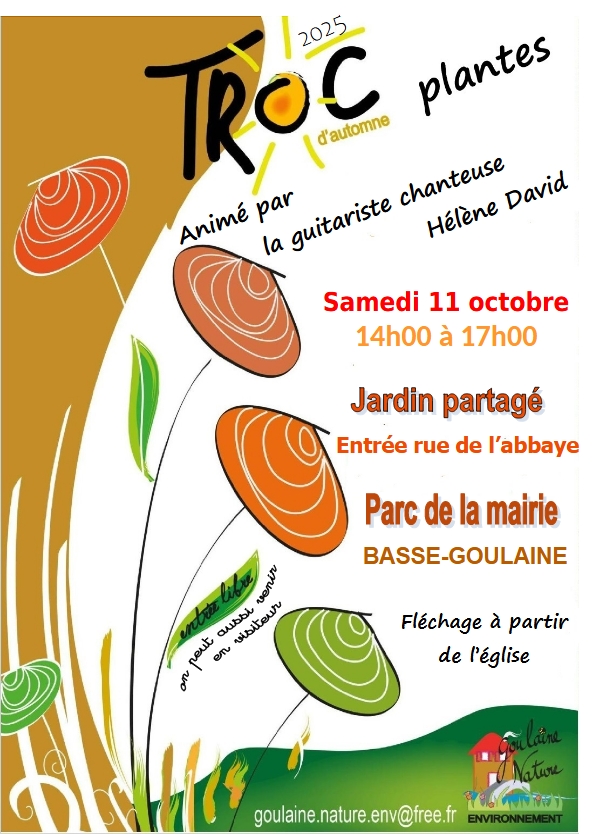 Préparez vos plants, boutures et sachets de graines et venez échanger et partager idées et conseils au Troc'plantes d’automne. La chanteuse et guitariste Hélène David assure l’ambiance pour que nous passions un bon moment ensemble. Entrons joyeusement dans l'automne !